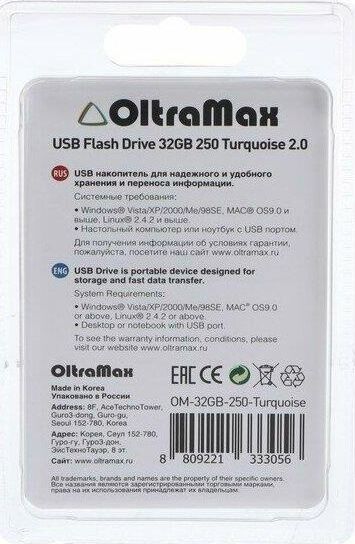 Флешка (USB) OLTRAMAX OM-32GB-250-бирюзовый