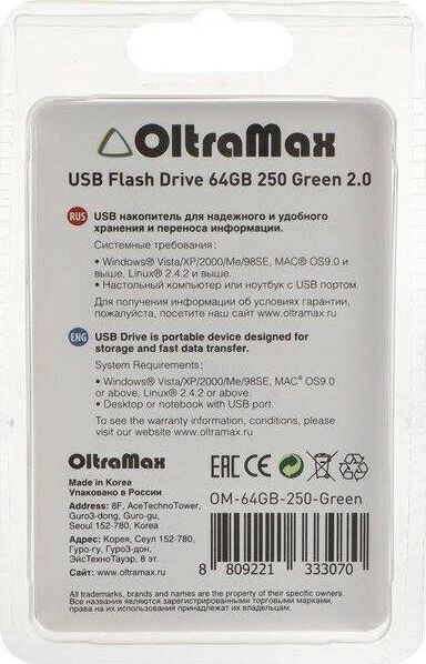Флешка (USB) OLTRAMAX OM-64GB-250-зеленый