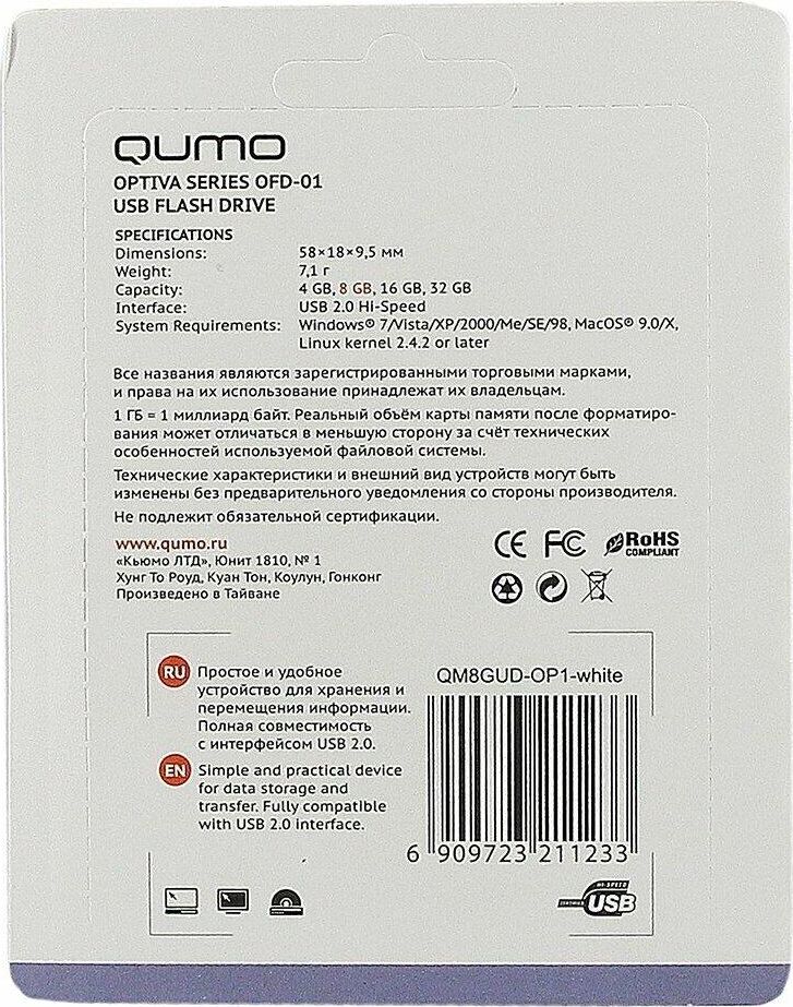 Флешка (USB) QUMO (21123) 8GB OPTIVA QM8GUD-OP1-white