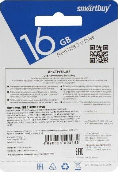 Флешка (USB) SMARTBUY (SB016GB2TWB) UFD 2.0 016GB Twist Blue синий