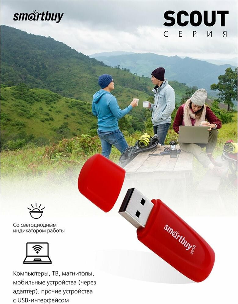Флешка (USB) SMARTBUY (SB032GB2SCR) UFD 2.0 032GB Scout Red красный