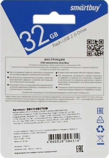 Флешка (USB) SMARTBUY (SB032GB2TWB) UFD 2.0 032GB Twist Blue синий