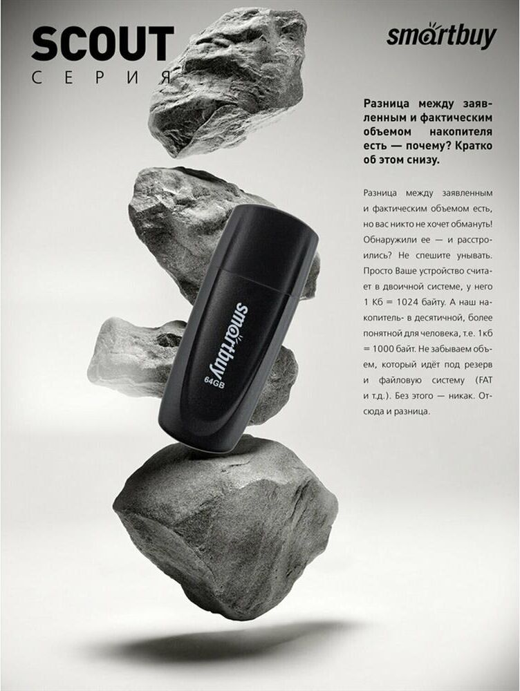Флешка (USB) SMARTBUY (SB064GB2SCK) UFD 2.0 064GB Scout Black черный