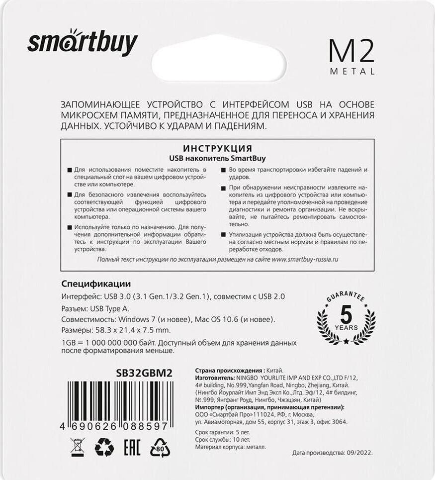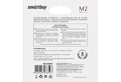 Флешка (USB) SMARTBUY (SB32GBM2) UFD 3.0/3.1 032GB M2 Metal 100MB/s стальной