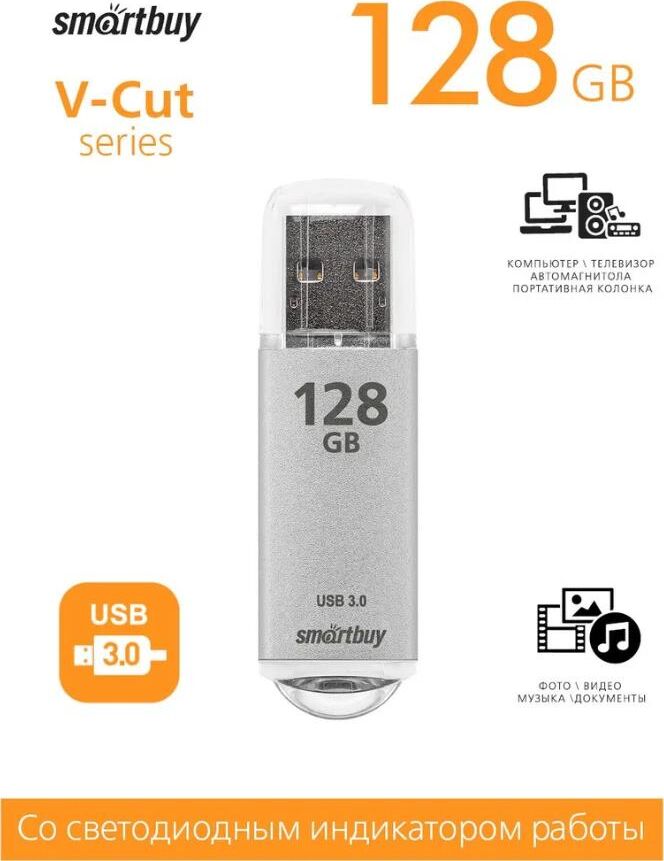Флешка (USB) SMARTBUY 128GB V-CUT SILVER USB3.0
