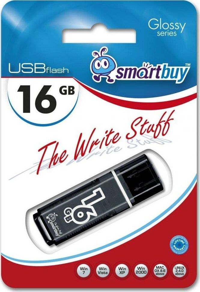 Флешка (USB) SMARTBUY 16GB GLOSSY SERIES BLACK