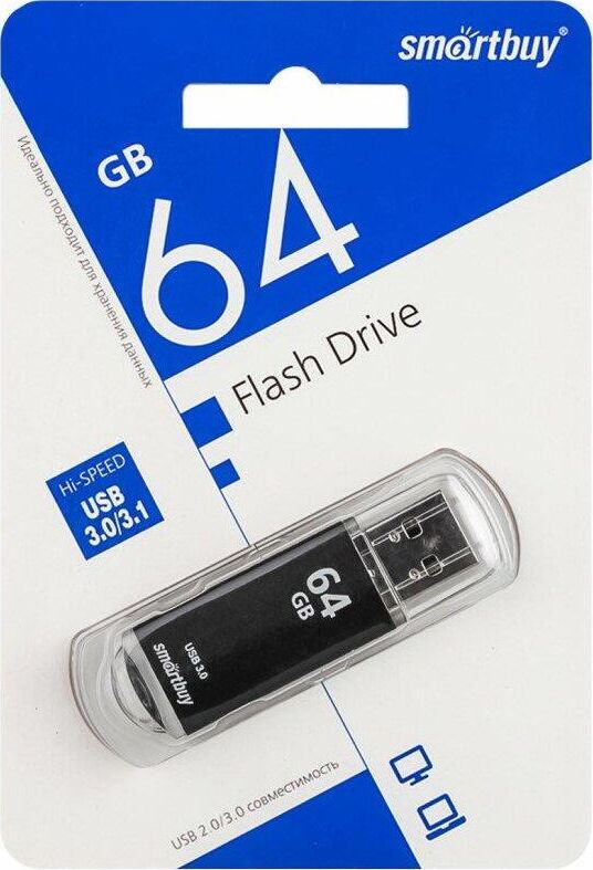 Производитель: SmartBuy Емкость: 64 Гб USB 3.0 (обратно совместим с USB 2.0) Совместимость с Windows 2000/XP/Vista/7, Mac OS 8.6 и Linux 2.4.0 (или выше), Пластик, Черный, Вес 8 г