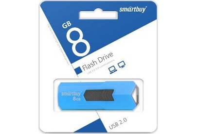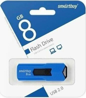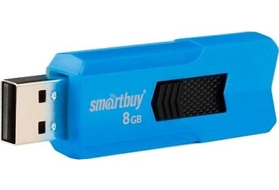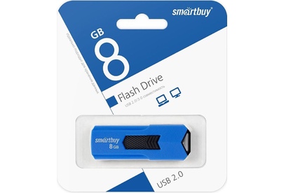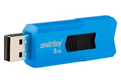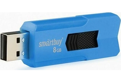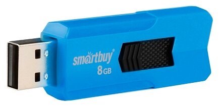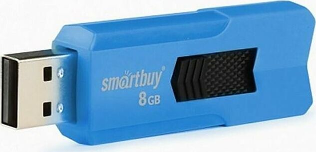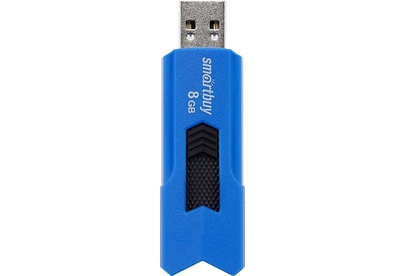 USB Флеш-накопитель SmartBuy 8ГБ, раздвижной, имеет отверстие для шнурка, которое позволяет прикрепить накопитель к Вашему телефону или связке ключей, корпус защищает разъем USB от повреждений, цвет - синий.