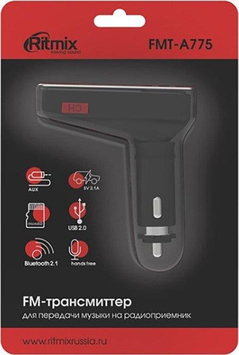 Форматы аудио MP3. Шаг поиска канала 0,1 МГц. Количество запоминаемых каналов 206. Мощность передатчика < 50 нВт. Диапазон радиочастот FM 87,5 - 108 МГц. Питание автоприкуриватель 12 - 24 В. Дополнительные функции: функция USB-зарядки, память последнего трека, FM-частоты, уровеня громкости. Интерфейс передачи данных Bluetooth, USB 2.0, AUX-in, MicroSD. Выходы USB 5В 2,1А. Поддерживаемые носители MicroSD, USB-флэш. Версия Bluetooth v 2.1, A2DP, AVRCP, HFP, Hands Free. Радиус действия < 5 м.