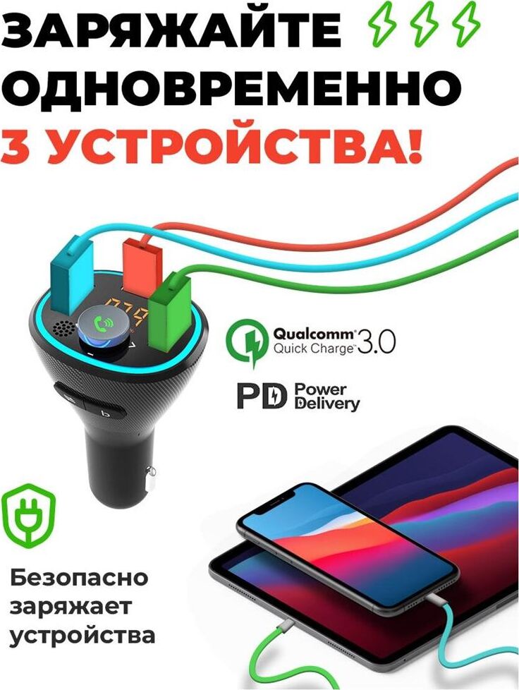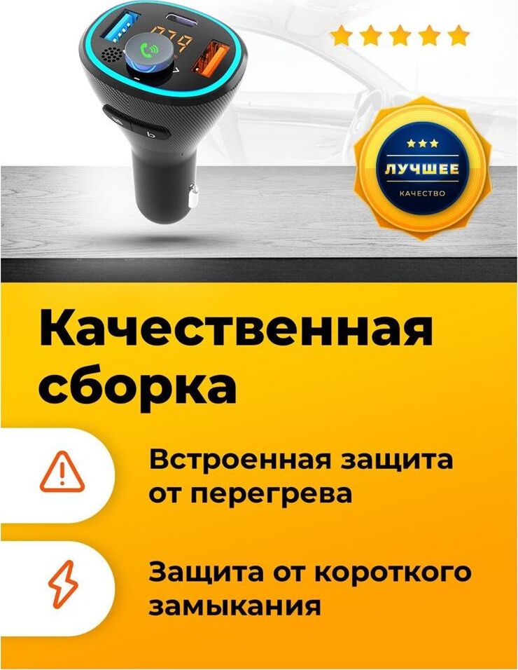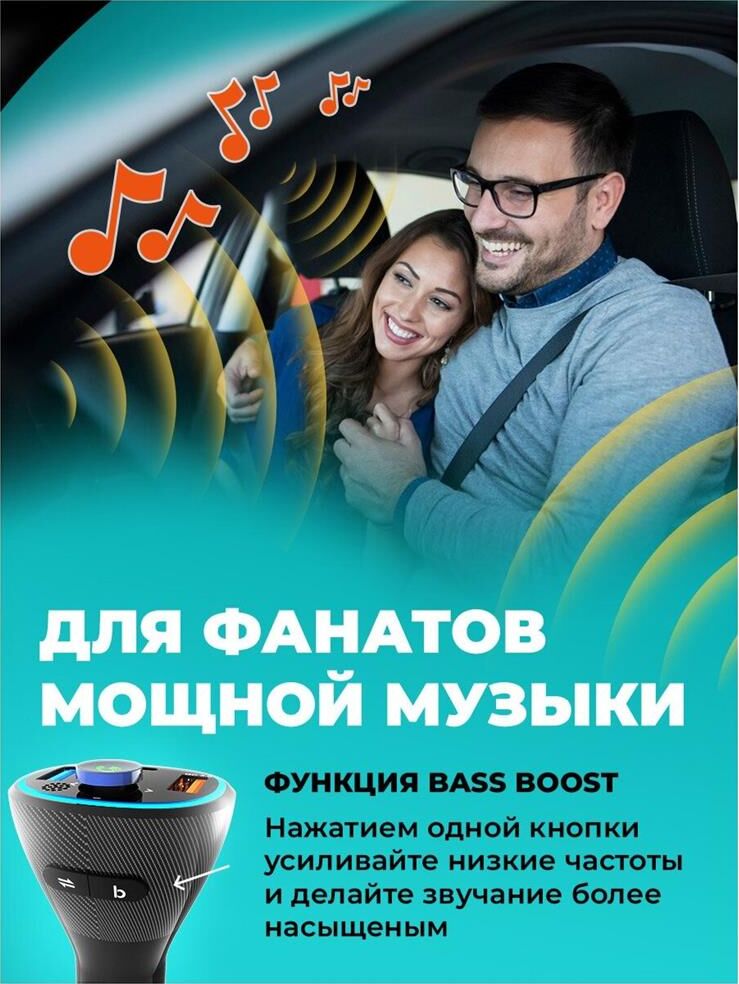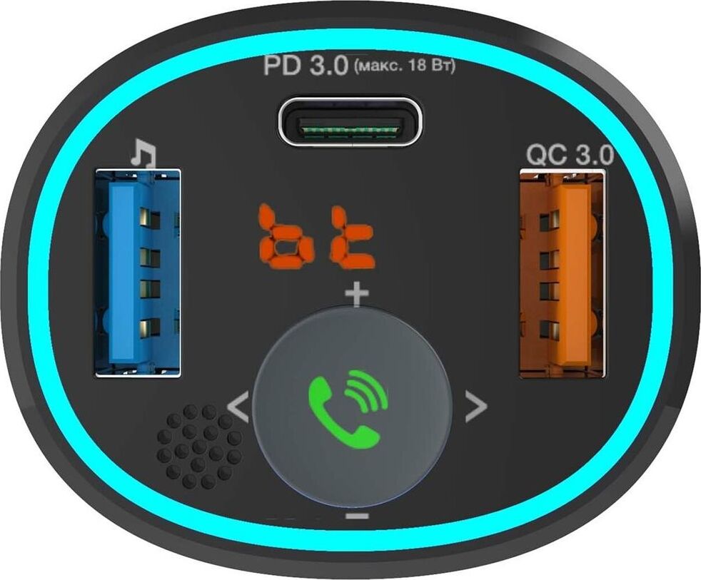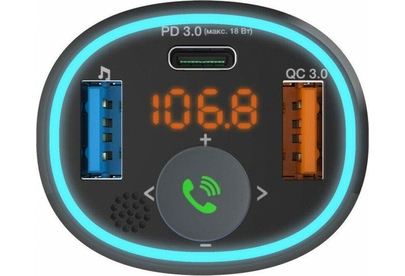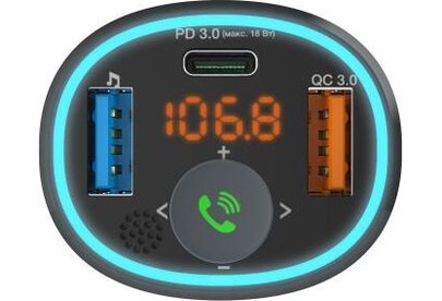 варианты внешнего видачёрный тип дисплеясегментный жидкокристаллический подключение дополнительной памятидо 32 ГБ конструкция микрофонавстроенный поддержка Bluetooth версия Bluetooth5.0 примерный радиус действия Bluetooth*до 10 м поддерживаемые профили BluetoothA2DP, AVRCP, HFP роли в Bluetooth-соединенииhandsfree, приёмник аудио диапазоны радиосигналаУКВ / FM 87,5–108 МГц, частотная модуляция (FM) роли в обмене радиосигналомисточник аудио функция BASS BOOST количество кнопок3 конструкция разъёмаштекер разъём прикуривателя питаниепостоянный ток напряжение питания12...24 В конструкция разъёмагнездо USB тип A максимальный объём подключаемого носителя памяти32 ГБ выдаваемое питаниепостоянный ток выдаваемое напряжение питания5 В выдаваемый ток питания1 А конструкция разъёмагнездо USB тип A выдаваемое питаниепостоянный ток номинальная выдаваемая мощность18 Вт