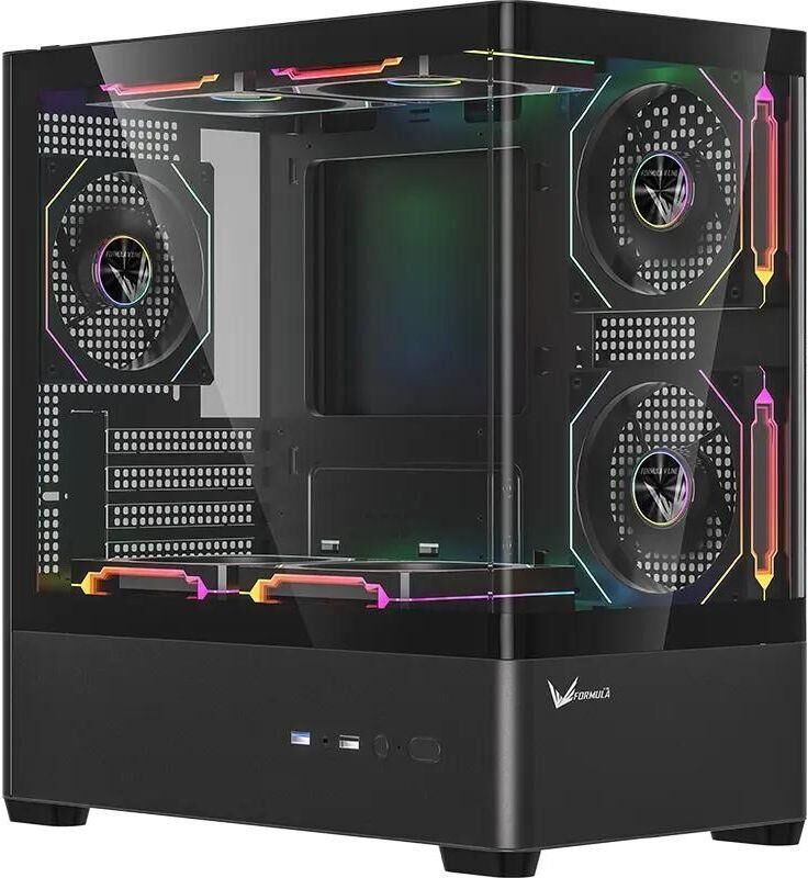 FORMULA Корпус Crystal U1M черный без БП mATX 7x120mm 2x140mm 1xUSB2.0 1xUSB3.0 audio bott PSU
