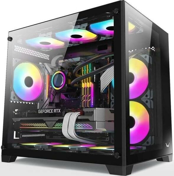 Отсеки 3,5" внутренние: 2. Фронтальные разъемы USB 2.0: 1. Фронтальные аудио-разъемы: есть. Материал корпуса: сталь/стекло. Боковая панель: прозрачная. Типоразмер: Mini-Tower. Внутренняя корзина для HDD: несъемная. Расположение БП: нижнее. Толщина стенок корпуса: 0.8. Максимальная длина видеокарты: 365. Отсеки 2,5" внутренние: 1. Фронтальные разъемы USB 3.0: 1. Количество слотов расширения: 4. Наличие блока питания: отсутствует. Фронтальная панель: прозрачная. Для геймеров: да. Максимальная высота кулера процессора: 155. Фронтальные разъемы USB 3.1 Type-C: 1. Материал прозрачной боковой панели: закаленное стекло. Материал прозрачной передней панели: закаленное стекло. Габариты упаковки (ед) ДхШхВ: 0.42x0.341x0.47. Вес упаковки (ед): 3.9. Возможность установки СВО 240 мм: ДА. Общее кол-во установленных вентиляторов: 1. Подсветка корпуса: есть. Совместимость СВО: справа 240 мм. Тип подсветки: ARGB. Фиксация боковых панелей: винты. Гарантия: 12 мес.. Вентиляторы на задней панели: 1х120 мм. Возможность установки