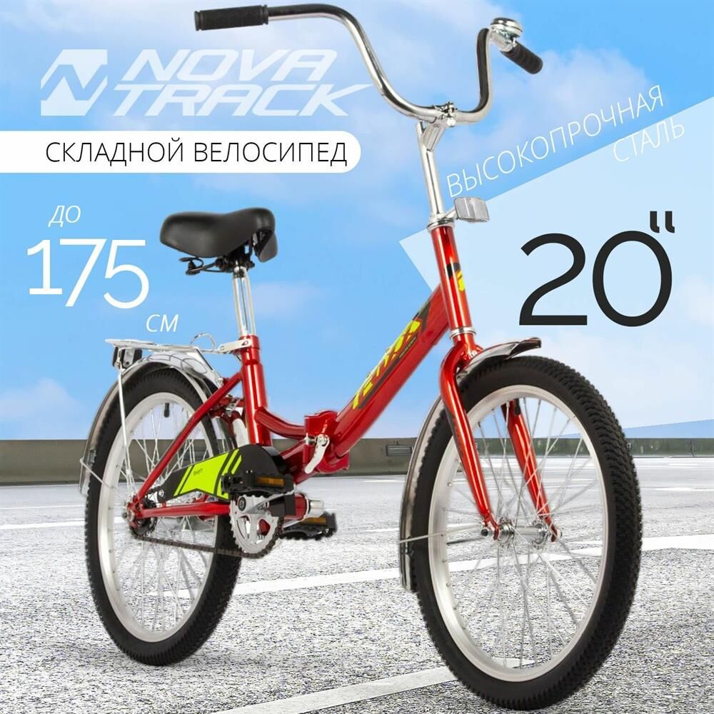 Велосипед FOXX 20" складной, SHIFT, красный, тормоз нож, двойной обод, багажник