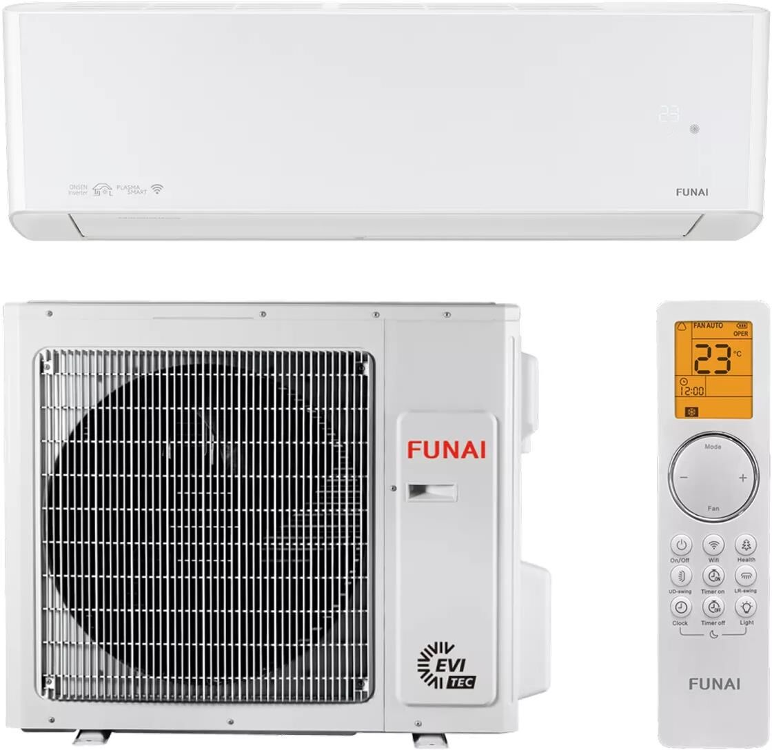 Инверторная сплит-система ONSEN FULL DC Inverter Heat Pump от FUNAI — это высокотехнологичное решение для создания комфортного микроклимата в жилых и коммерческих помещениях. Модель разработана как тепловой насос для постоянного проживания, что позволяет использовать е в качестве основного источника отопления даже при экстремально низких температурах наружного воздуха. Основные характеристики: Технологические особенности: Комфорт и управление: Особенности дизайна: Гарантия и сервис: Преимущества использования: Инверторная сплит-система FUNAI серии ONSEN FULL DC Inverter Heat Pump — это передовое климатическое оборудование, созданное для условий российского климата. Благодаря уникальному 2-ступенчатому компрессору SMART 2-Stage, технологии инжекции хладагента EVI TEC и нагревателю поддона SMART Super B-Heat, система обеспечивает эффективный обогрев даже при температуре наружного воздуха до -30C. Модель также оснащена мощным ионизатором PLASMA SMART и 4 фильтрами 6-ступенчатой очистки, что гарантирует чистоту и