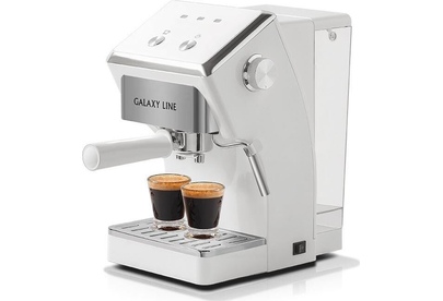 Galaxy LINE GL 0756 БЕЛАЯ Кофеварка электрическая 1500 вт, 20 бар, съемный резервуар для воды 1,5 л, съемный контейнер для кофе из нержавеющей стали, автоотключение, регулятор интенсивности подачи пара, капучинатор, 2 шт. фильтр из нержавеющей стали, 1 шт. мерная ложка,220-240 в, 50 гц,