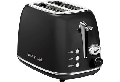 Тостер электрический Galaxy LINE GL 2920, магия черного, металл, 900 Вт, 6 степеней поджарки, метал. корпус, функция подогрева, функция разморозки, автомат. центрирование тостов, автоотключение при перегреве, кнопка отмены приг., съемный поддон для крошек
