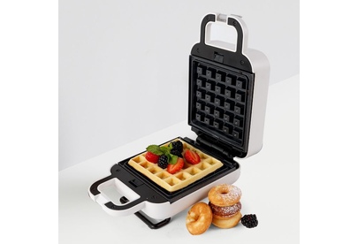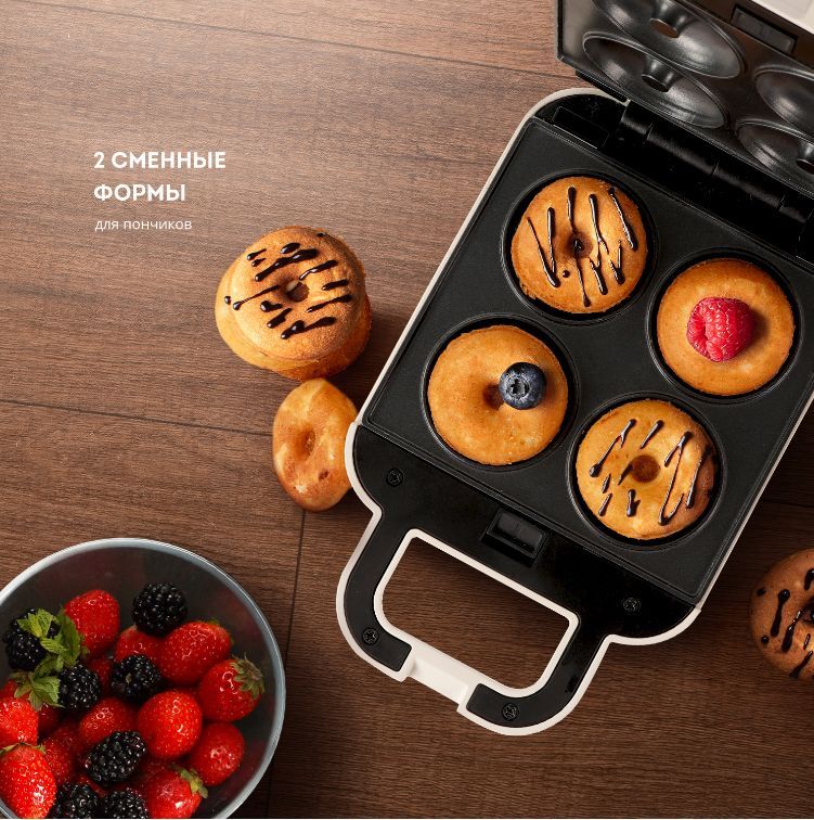 GALAXY LINE GL 2969 Вафельница Номинальная потребляемая мощность 700 Вт Теплоизолированный корпус Антипригарное покрытие рабочей поверхности Индикатор нагрева 2 двойные сменные формы: для приготовления венских вафель для приготовления пончиков Фиксаторы сменных форм Длина шнура питания: 70 см Питание: 220-240 В ~ 50 Гц Книга рецептов в комплекте Гарантия: 2 года
