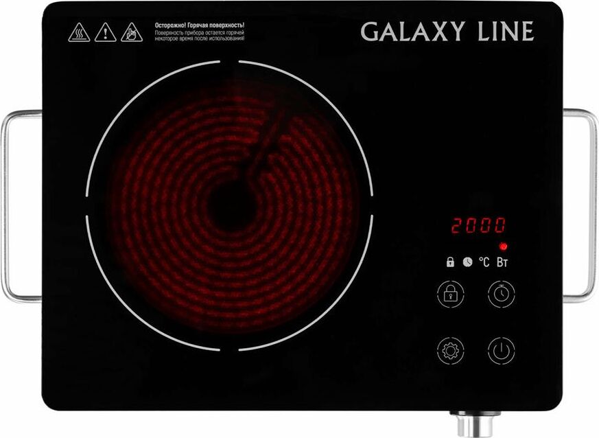 GALAXY LINE GL 3033 Инфракрасная плитка мощность 2000 Вт, регулировка температуры в диапазоне 90-650 °С , диапазон параметров мощности 200-2000 Вт, регулировка времени приготовления в диапазоне от 1-180 минут, LED-дисплей, удобные ручки для переноски, защита от перегрева, современный дизайн, максимальная нагрузка 8 кг, высокоскоростной инфракрасный нагрев, стеклокерамическая варочная поверхность, сенсорное управление