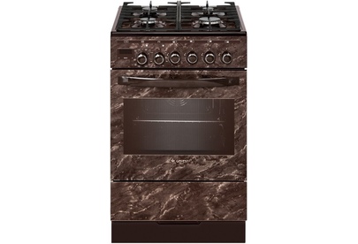 Комбинированная, газоэлектрическая плита шириной 50 см. Коричневого цвета, на фасаде рисунок, имитирующий мрамор.