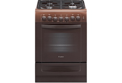 Комбинированная плита шириной 60см, с металлической защитной крышкой и выдвижным ящиком для хранения посуды и принадлежностей. В центре панели управления расположен таймер, поворотом указателя выставляется время приготовления, по истечении времени раздастся звуковой сигнал - напоминание. Исполнение в коричневом цвете.