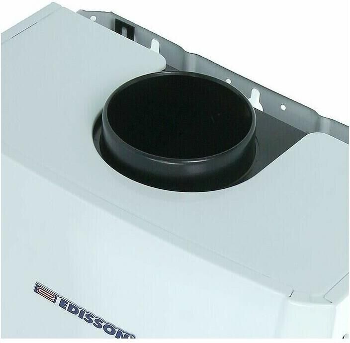 Проточный газовый водонагреватель Edisson E 20 D, белый, Полезная мощность 20 кВт, Тип камеры сгорания открытый, Максимальная температура воды 50 °С, Размеры (ШxВxГ) 340x590x140 мм, Установка вертикальная на стену с нижней подводкой (1/2), Управление механическое, Системы защиты газ-контроль, от перегрева, Индикация включения, Дополнительная информация: мин. давление воды: 0.25 атм; макс. давление воды: 8 атм; ограничение температуры нагрева; материал теплообменника: медь; тип розжига: электроподжиг; автоматическое поддержание температуры воды на выходе; диаметр дымохода: 110 мм