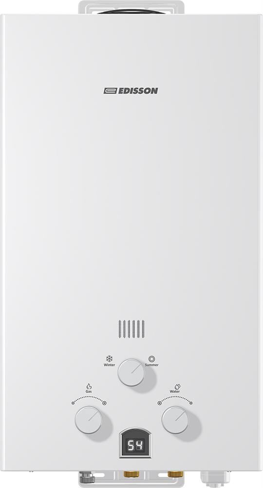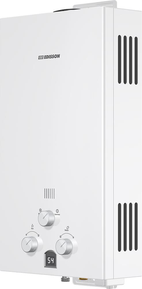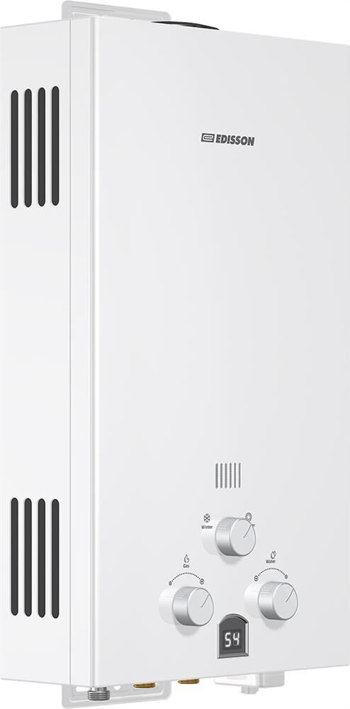 Газовый проточный водонагреватель Edisson E 20 D серии Eco используется в местных системах водоснабжения для постоянного автономного обеспечения горячей водой одной или нескольких точек водоразбора таких как санитарные узлы, кухни в жилых и загородных частных домах, а также других бытовых и хозяйственных объектах. Модель оснащена горелкой с 8 форсунками, теплообменником с трубчатым контуром, стабилизатором тяги в виде перфорированного короба, дымовыводящим отверстием, резьбовыми штуцерами для подключения