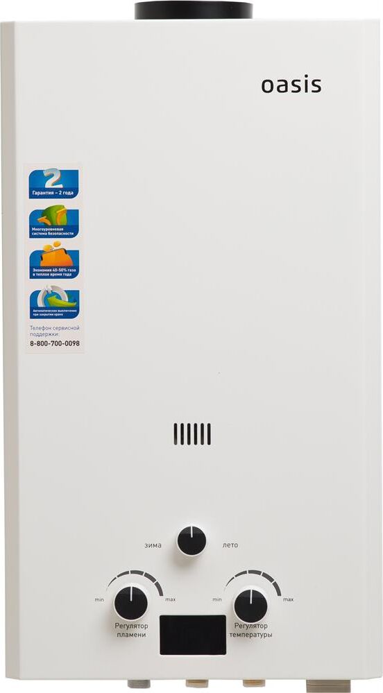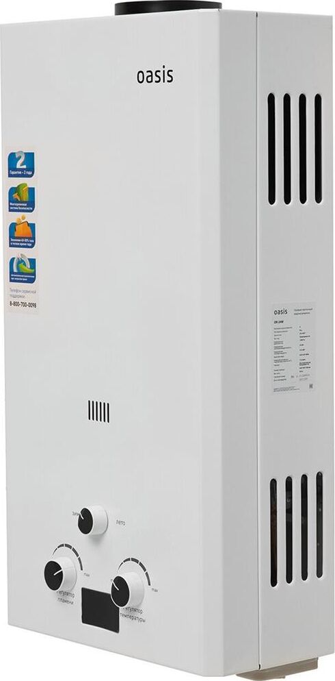 Тип газа - Природный газ. Давление газа, Па, (мл, вод. ст.) - 1300 – 2000 (130-200). Номинальная тепловая мощность, кВт - 24. Номинальная теплопроизводительность, кВт - 21,6. Давление воды, МПа - 0,02-0,7. Производительность, л/мин при t=25°С - 12. Питание - Постоянный ток, батарейки 3 вольта. Зажигание - Автоматическое электронное. Диаметр дымохода, мм - 110. Габаритные размеры, мм (высота х ширина х глубина) - 620*340*180.