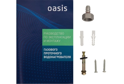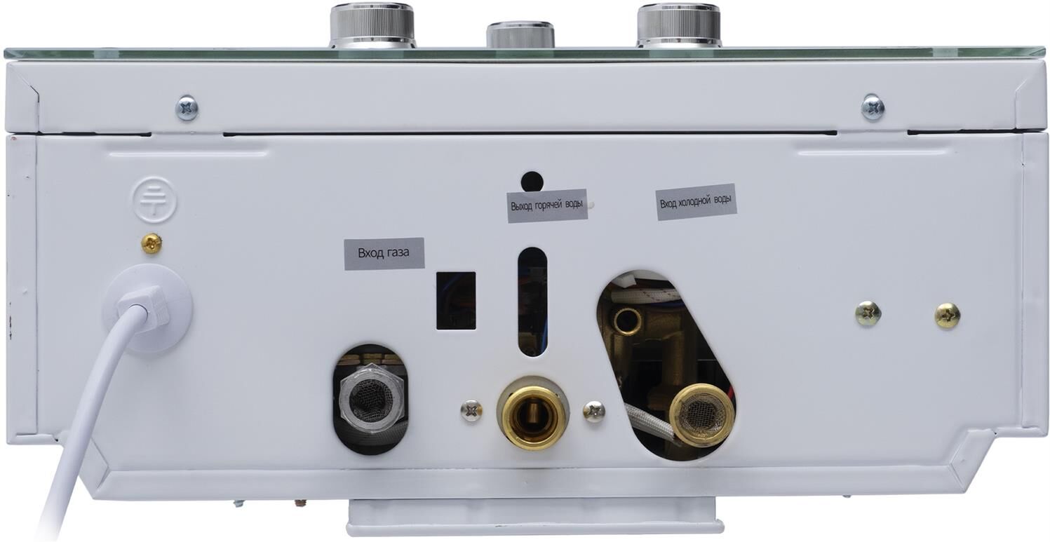 005 Газовый проточный водонагреватель"Oasis" серия Glass 20 LG Тип газа Природный газ Номинальное давление газа, Па 1300 Номинальный расход газа м?/час 2 Номинальная тепловая мощность, кВт 20 Номинальная теплопроизводительность, кВт 18 Давление воды, МПа 0,02-0,7 Номинальная емкость при нагреве на ?Т =25°С, л/мин 10 Зажигание Автоматическое электронное Питание Постоянный ток, батарейки 3 В Диаметр дымохода, мм 110 Габаритные размеры, мм (ВхШхГ] 590х340х145 Вес нетто, кг 9,2