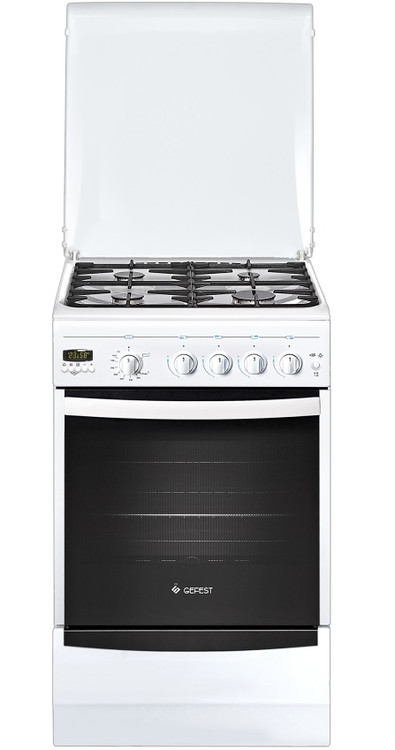 Белая газовая плита шириной 50 см с многофункциональным электронным таймером. Классический дизайн, рабочий стол и фасад бытового прибора покрыты эмалью, конфорки защищены металлической крышкой и чугунными решетками. Автоматический электроподжиг и газ-контроль всех горелок - не нужно спичек, чтобы разжечь конфорку, а при случайном угасании пламени подача газа будет перекрыта за несколько секунд. Духовой шкаф оборудован термостатом, температура поддерживается на заданном уровне. Ключевые преимущества: