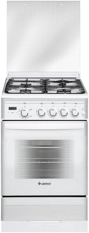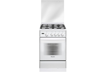 Белая газовая плита в обновленном дизайне, со стеклянными фасадом и крышкой, ширина 50 см. Внешний вид прекрасно сочетается с техническим оснащением, плита установленная на кухне смотрится замечательно. Модель оснащена автоматическим (встроена в переключатели) электроподжигом и газ-контролем всех газовых горелок. На панели управления есть сенсорный таймер, использование которого здорово облегчает процесс приготовления.