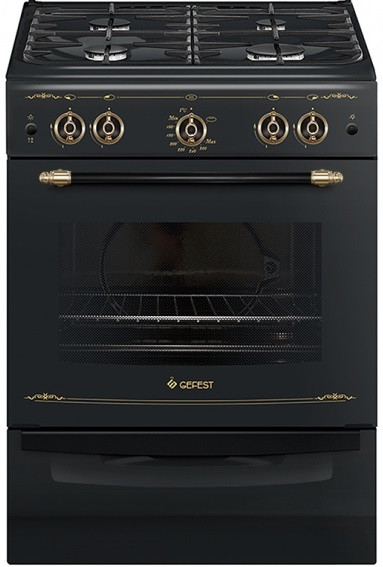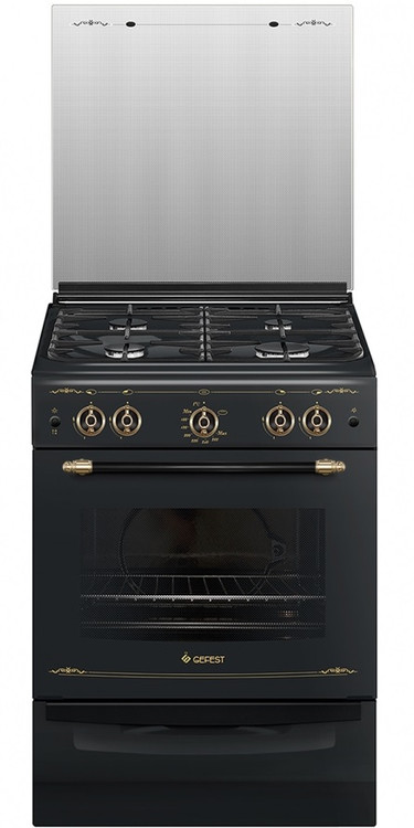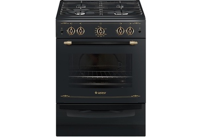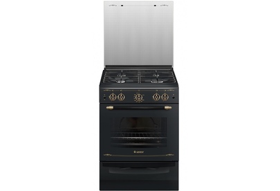 Черная газовая плита шириной 50 см, фасад украшен декором в стиле "ретро". Эстетика и функциональность модели вполне заслуживает место на Вашей кухне, а ежедневное использование будет приносить удовольствие и радость от покупки. Электроподжиг кнопкой всех газовых горелок, газ-контроль в духовке и дополнительно - оснащение стеклянной крышкой рабочего стола и выдвижным ящиком для хранения посуды. Четыре конфорки различного диаметра и мощности удобны в эксплуатации, можно использовать посуду практически любого диаметра. Духовой шкаф оснащен термостатом, дополнительно установлен гриль для отличного запекания мяса.Ключевые преимущества: