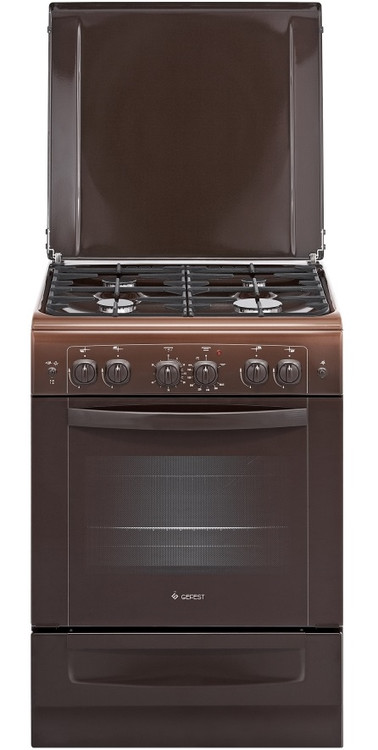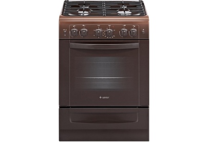 Газовая плита коричневого цвета, ширина 60 см. Фасад и рабочий стол - эмалированные, на панели управления установлен таймер, со звуковым сигналом об окончании времени работы. Три газовые горелки дополнены одной электрической чугунной конфоркой, варочная панель накрывается металлической крышкой. Духовой шкаф - с газовым, термостатированным нагревом, нижний нагрев дополнен электрическим грилем, включаемым отдельно. Все газовые горелки с электроподжигом, духовка оснащена газ-контролем нижней горелки, съемными направляющими для противней и вертелом. Для хранения кухонной посуды предусмотрен выдвижной ящик.Ключевые преимущества: