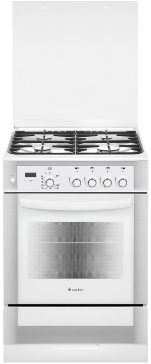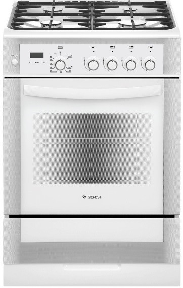 Белая газовая плита шириной 60 см, со стеклянной крышкой и выдвижным ящиком для хранения посуды. Классический дизайн модели дополнен стеклянным фасадом, с декорированными элементами управления. Плита замечательно выглядит установленная на кухне, как встроенная, так и стоящая отдельно. Техническое же оснащение - на высоте. На панели управления присутствует сенсорный таймер, можно задать время приготовления, по истечении времени раздастся звуковой сигнал.Интегрированный в поворотные ручки электроподжиг и система газ-контроля всех горелок варочной поверхности и духовки. Четыре конфорки рабочего стола имеют различный диаметр и мощность, чугунные составные решетки не боятся тяжелой посуды, а стеклянная крышка у задней стенки улавливает брызги масла и прекрасно очищается.