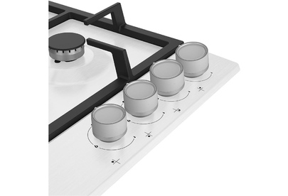 Газовая варочная поверхность (газ на металле), 4 зоны, одна зона с двойным уровнем пламени; автоподжиг, газ-контроль, чугунные решетки, цвет: белый