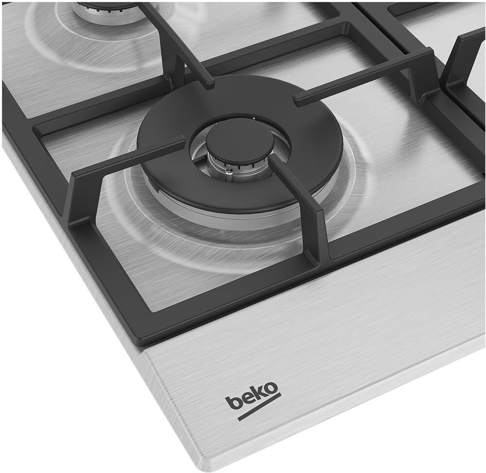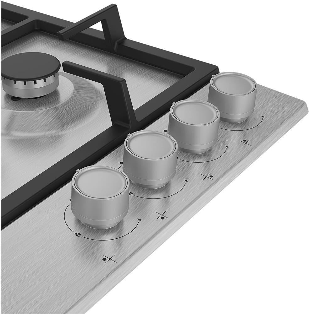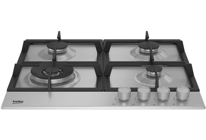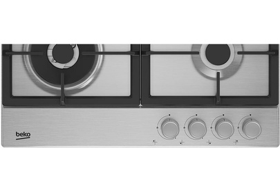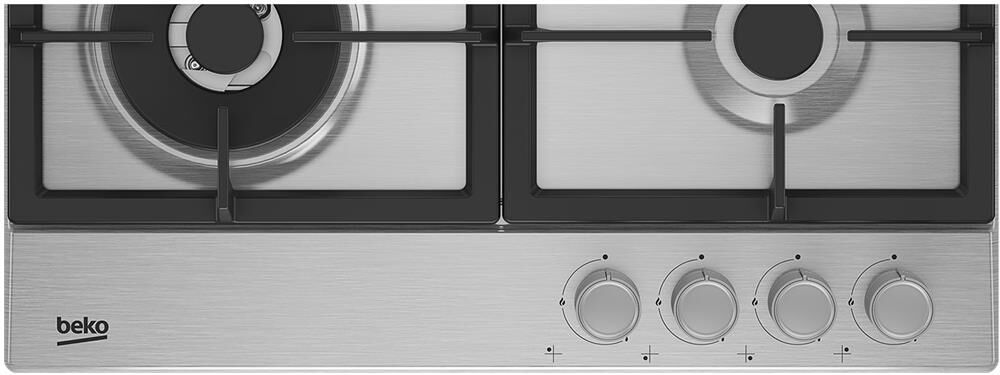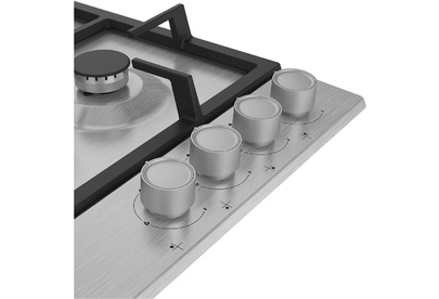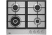 Газовая варочная поверхность (газ на металле), 4 зоны, одна зона с двойным уровнем пламени; автоподжиг, газ-контроль, чугунные решетки, цвет: нержавеющая сталь