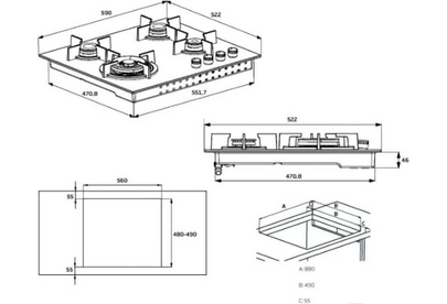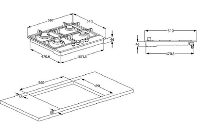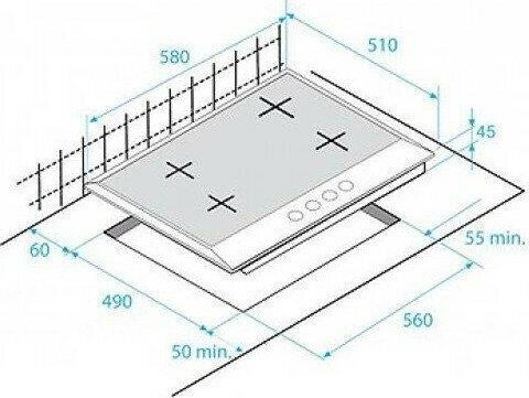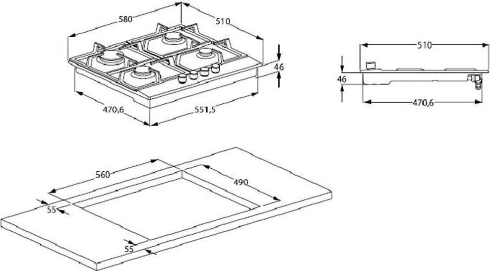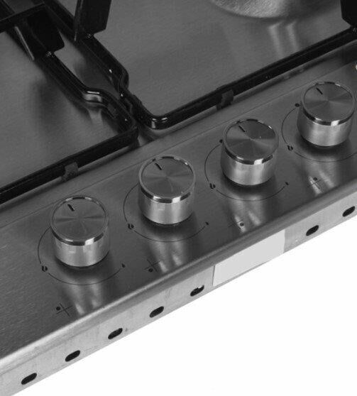 (ШхГ) 58х51см. Цвет нерж. сталь.Варочная панель газовая независимая. Тип управления механическое. Переключатели поворотные. Электроподжиг механический. Газовых конфорок 4. Панель конфорок металл.