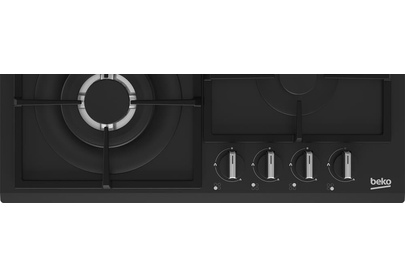 Газ на стекле; 4 конфорки; 60см; одна зона с двойным уровнем пламени; автоподжиг; газ-контроль; чугунные решетки; Расположение панели управления фронтальное; Цвет: Черный