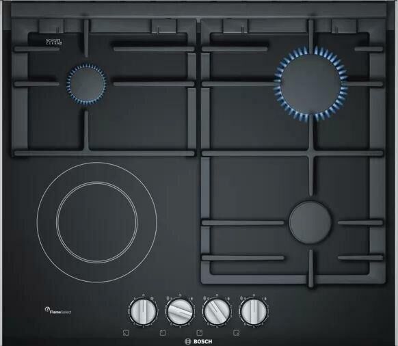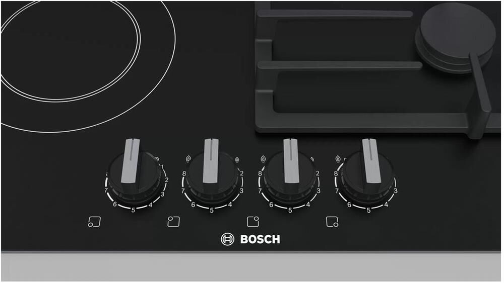 Газовая варочная панель BOSCH Комбинированная варочная панель PRY6A6B70Q, 4 конфорки, стеклокерамика, черный