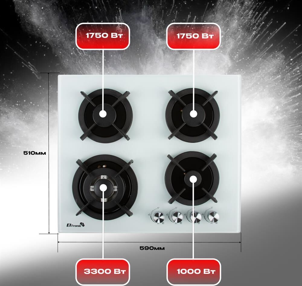 Газовая варочная панель ELTRONIC (33-06) 4 конфорки , белый