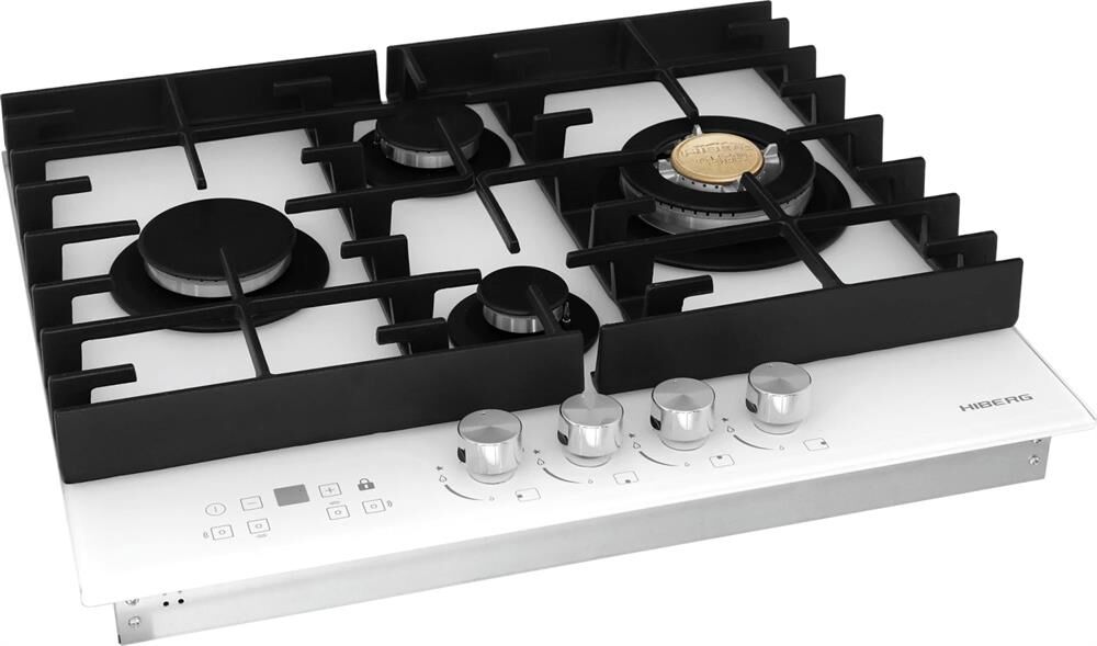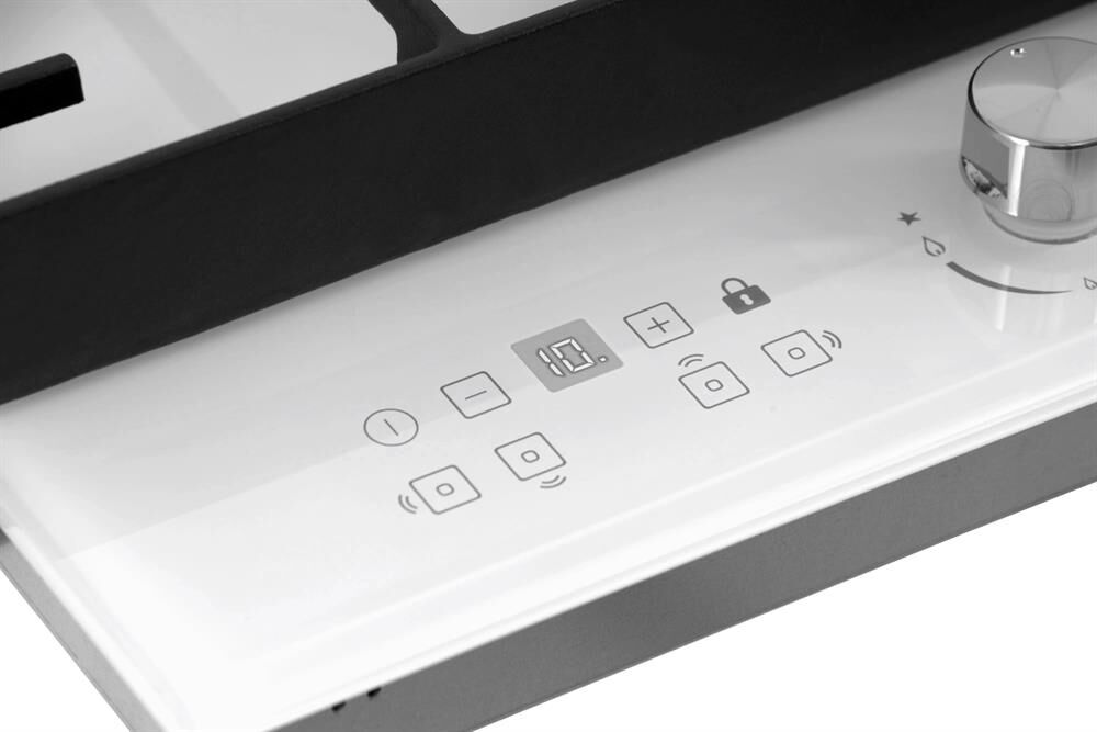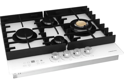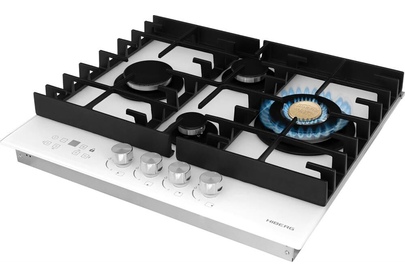 Панель конфорок: Закаленное стекло, Чугунные решетки: Усиленные, Тип электроподжига: Автоматический, Газ-контроль конфорок: Да, Таймер: Индивидуальный, с отключением, Ширина (см): 58.4, Цвет белый