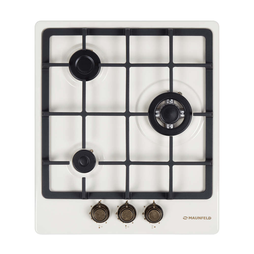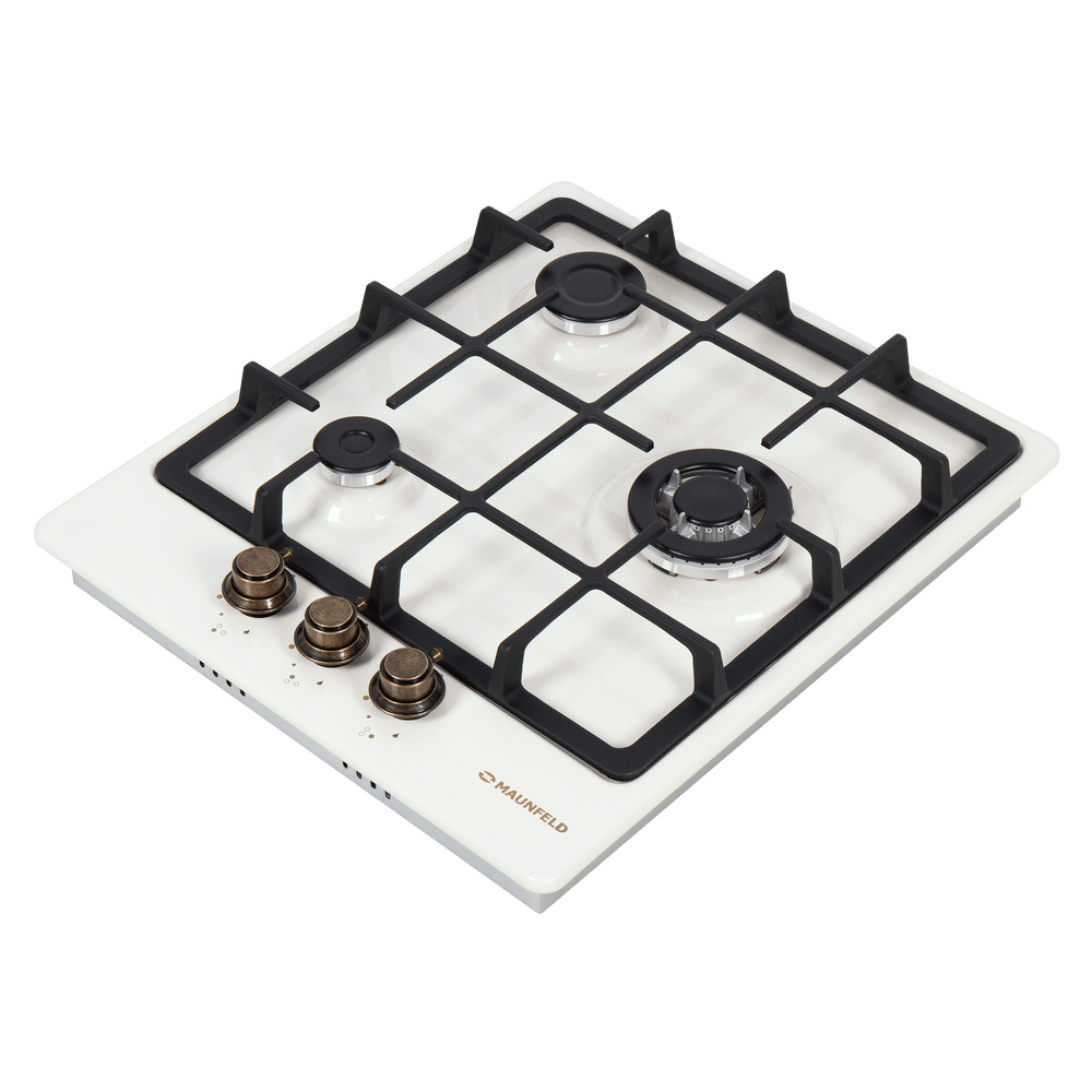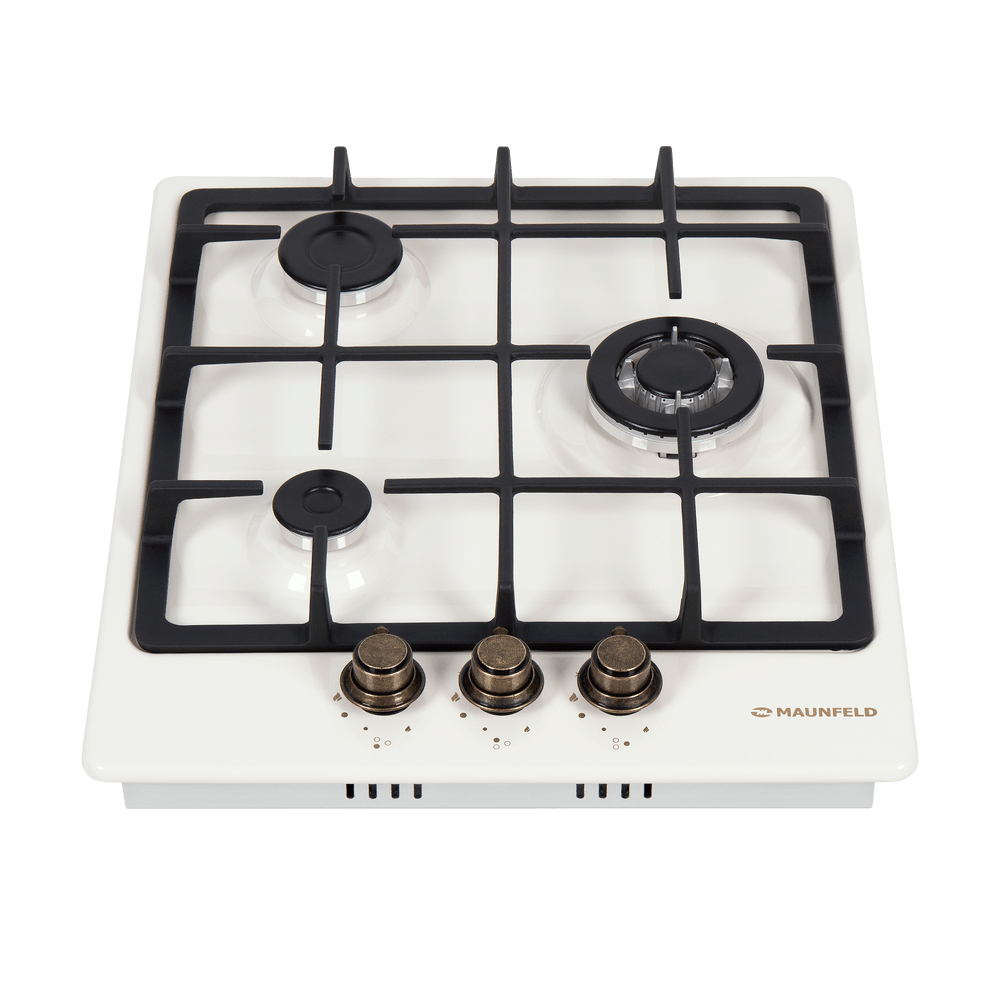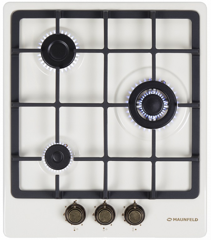 Газовая варочная панель Maunfeld EGHE.43.33CBG.R/G выполнена из металла с покрытием из высококачественной эмали цвета «слоновая кость». 3 итальянские конфорки «SABAF» разной мощности и диаметра, включая WOK-горелку, предназначены для длительной эксплуатации. Для удобства в каждой ручке конфорки расположен автоматический электроподжиг. В комплекте поставляются жиклеры для баллонного газа Sourdillion (Франция). Ключевые преимущества: Чугунные решетки Газ-контроль Цельнометаллические поворотные ручки