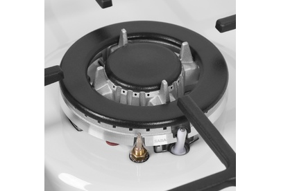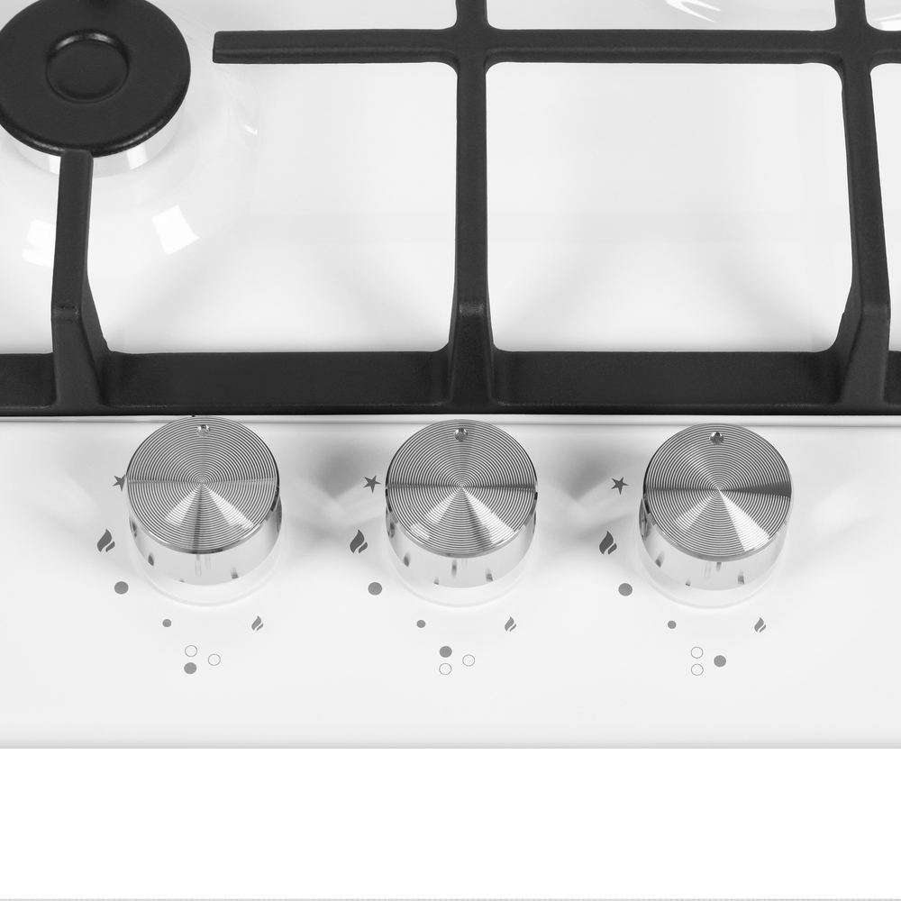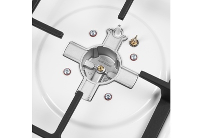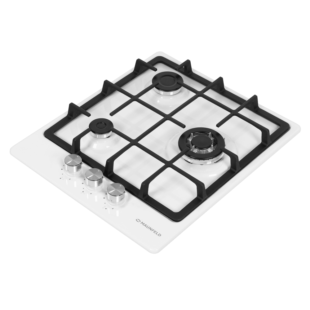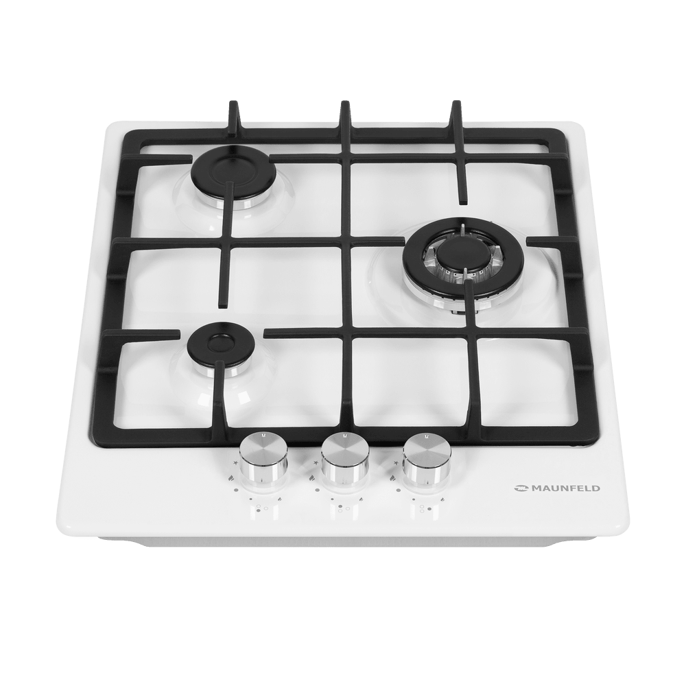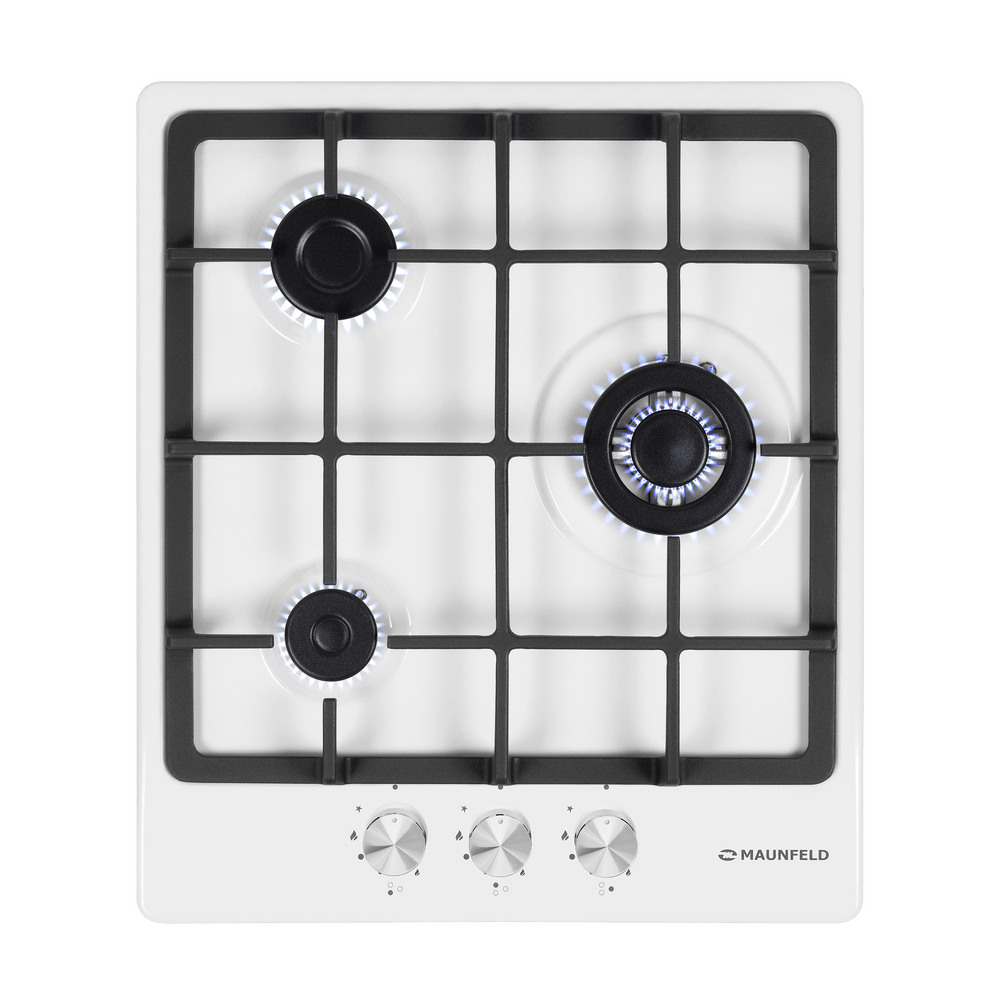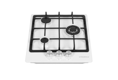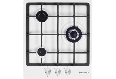 Варочная панель Maunfeld EGHE.43.33CW/G представлена в белом цвете со стальной фурнитурой. Модель из коллекции «Модерн» относится к газовому типу. Материал поверхности металл, покрытый эмалью. Решетки выполнены из чугуна, устойчивого к влиянию высоких температур и механических воздействий. Ниша для встраивания имеет следующие размеры 41×48 см. Три конфорки расположены таким образом, чтобы можно было использовать не только стандартную посуду, но и другую утварь для приготовления пищи. Прибор можно подключить как к магистральному трубопроводу, так и к баллону. Механическое управление осуществляется с помощью поворотных переключателей, которые представлены цельнометаллическими полнотелыми ручками. В комплекте идут жиклеры для баллонного газа. Гарантия от производителя составляет 36 месяцев. Устройство оснащено функцией автоматического электроподжига, который упрощает в разы его запуск и избавляет вас от ненужных трат на приобретение спичек или зажигалок. Для включения конфорки достаточно повернуть рыча