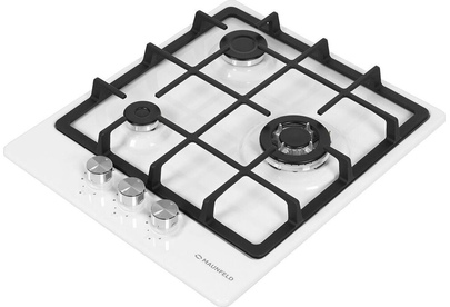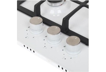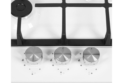 Газовая варочная панель. Количество конфорок 3. Материал поверхности металл с эмалью. Дизайн (коллекция) Модерн. Цвет белый. Цвет фурнитуры серебристый. Решетки чугунные. Габариты В/Ш/Г 5,1/45/51/см. Габариты ниши для встраивания (Ш х Г), 41*48см. Тип управления механическое. Элементы управления поворотные. Особенности элементов управления цельнометаллические полнотелые ручки. Электроподжиг автоматический. Газ-контроль. Использование газа: баллонный газ (тип G30), магистральный. Жиклеры для баллонного газа в комплекте.