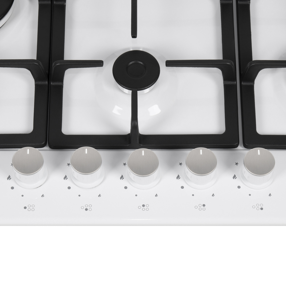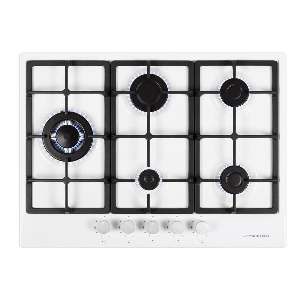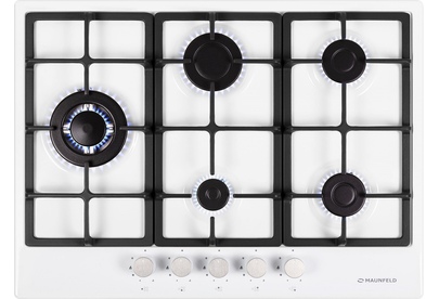 Maunfeld EGHE.75.33CW/G — это пятиконфорочная газовая варочная панель шириной 70 см. Управление механическое, осуществляется при помощи цельнометаллических поворотных ручек серебристого цвета. Решётки чугунные. Функция газ-контроля обеспечивает безопасную эксплуатацию. Ключевые преимущества: Чугунные решётки WOK-горелка Электроподжиг