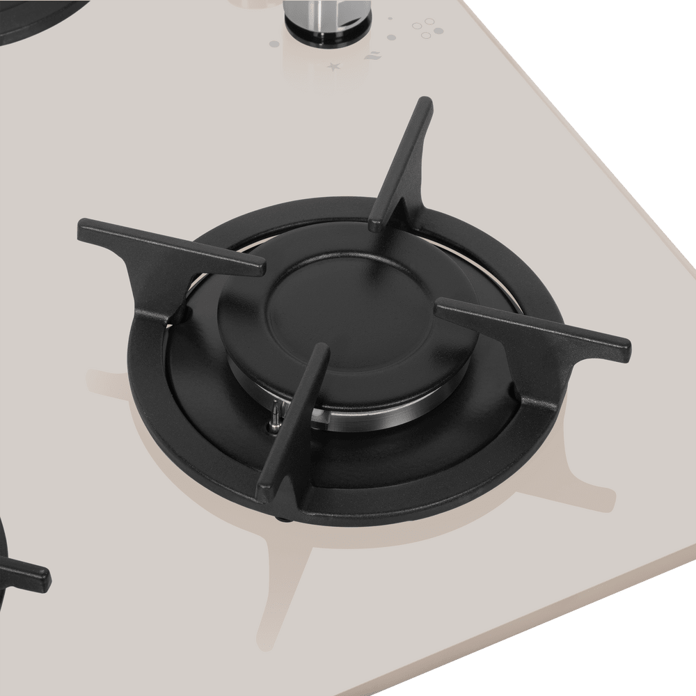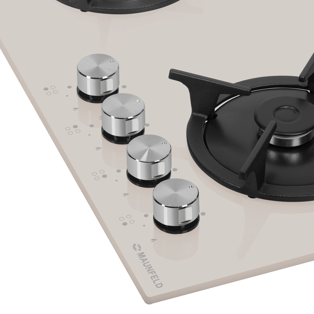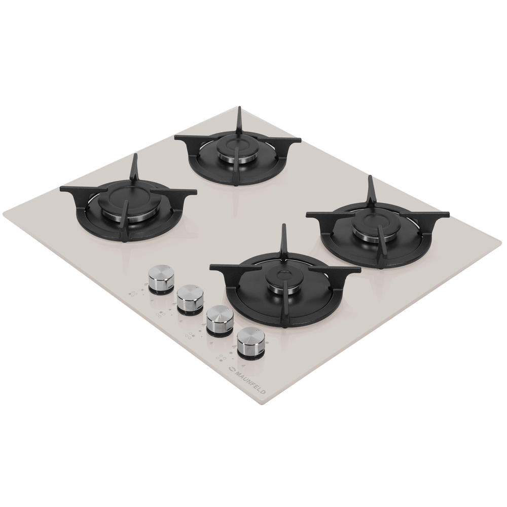 Газовая варочная панель Maunfeld EGHG.64.1CBG/G современного дизайна и цвета бежевое стекло. Чугунные решетки индивидуальны для каждой конфорки, можно снять любую и помыть. Поверхность из стекла ударопрочная и не прихотлива в уходе. Поворотными элементами управления легко и удобно настраивать мощность горения огня. Ключевые преимущества: Чугунные решетки Поверхность из жаропрочного стекла Поворотные элементы управления