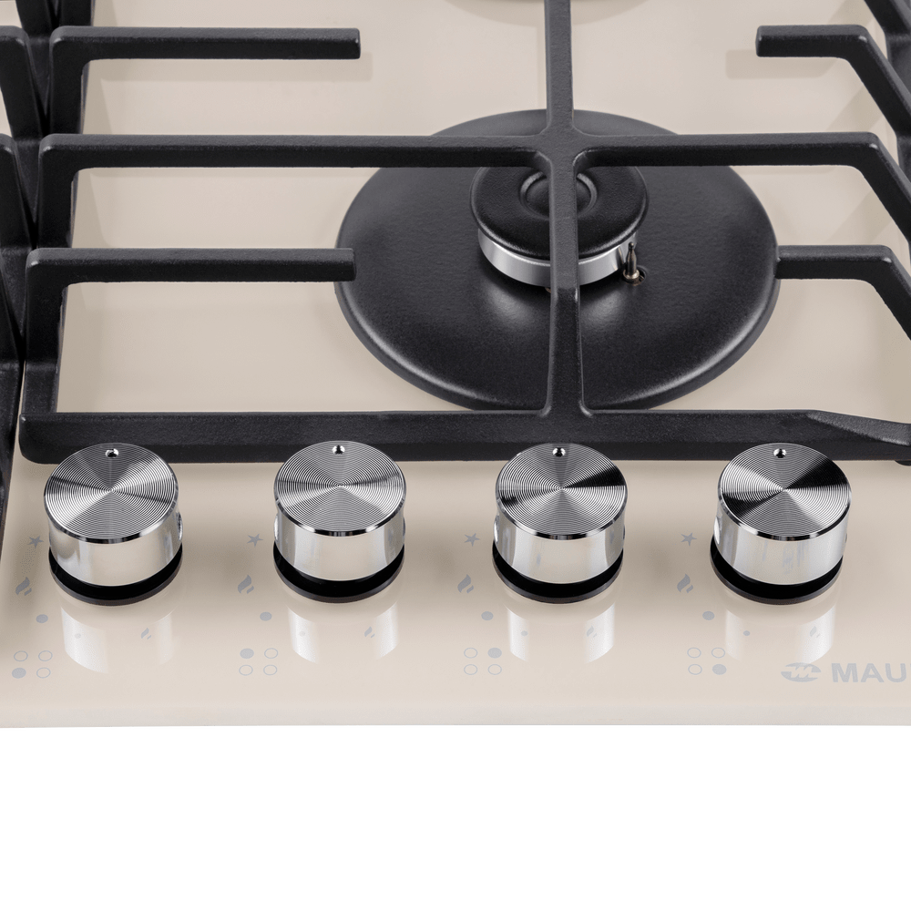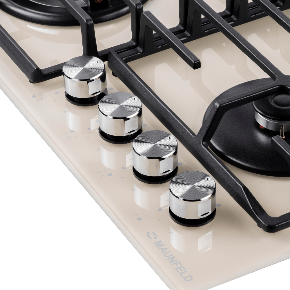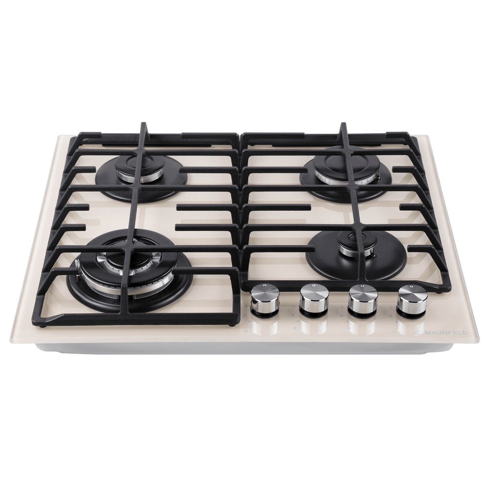 Газовая варочная панель Maunfeld EGHG.64.63CBG/G бежевого цвета. Поверхность из закаленного стекла ударопрочная и легко очищается от загрязнений. Две чугунные решетки с крестообразными соединениями позволяют ставить посуду любого диаметра. WOK конфорка повышенной мощности создает двойное пламя и уменьшает время разогревания или кипячения. Ключевые преимущества: Поверхность из закаленного стекла Чугунные решетки WOK конфорка