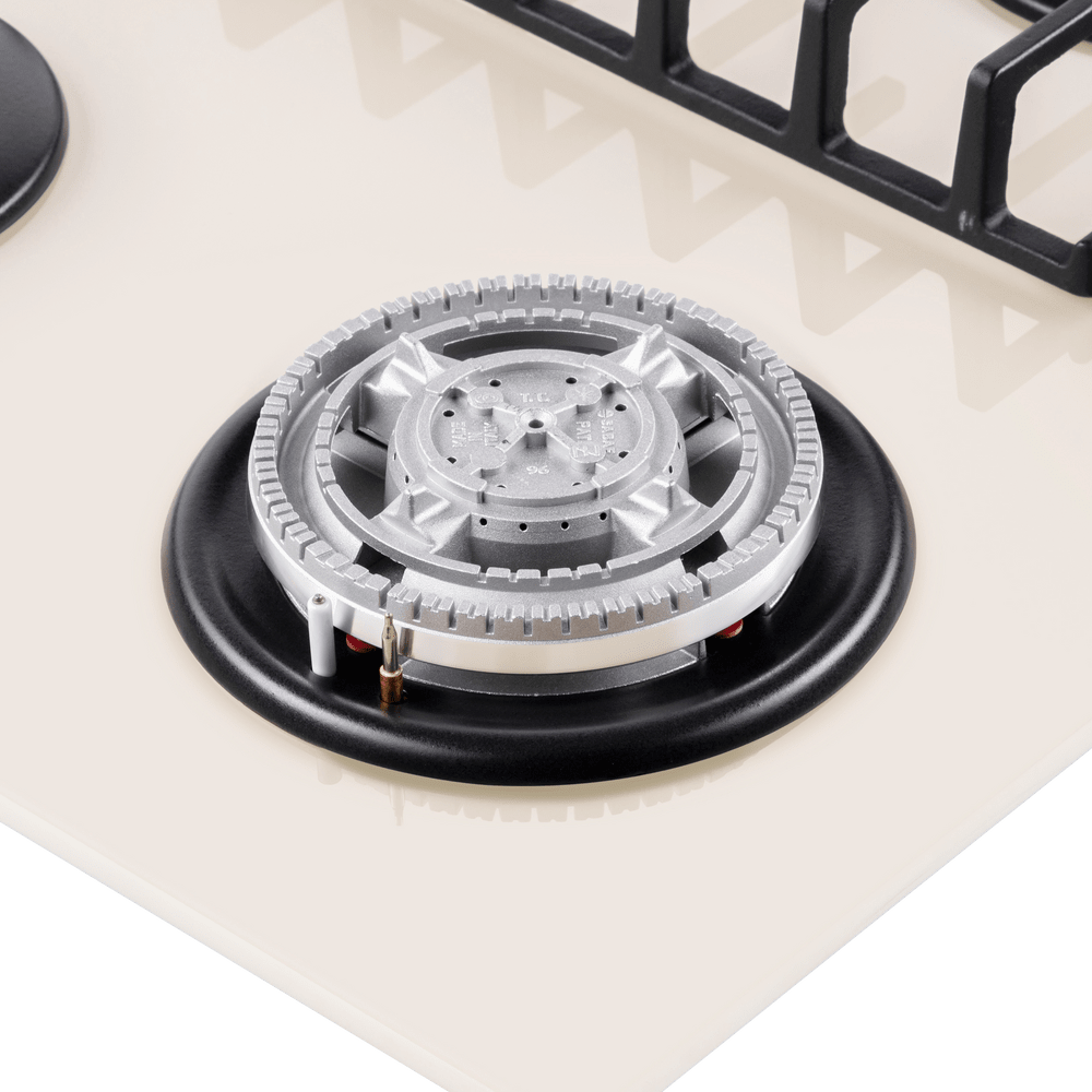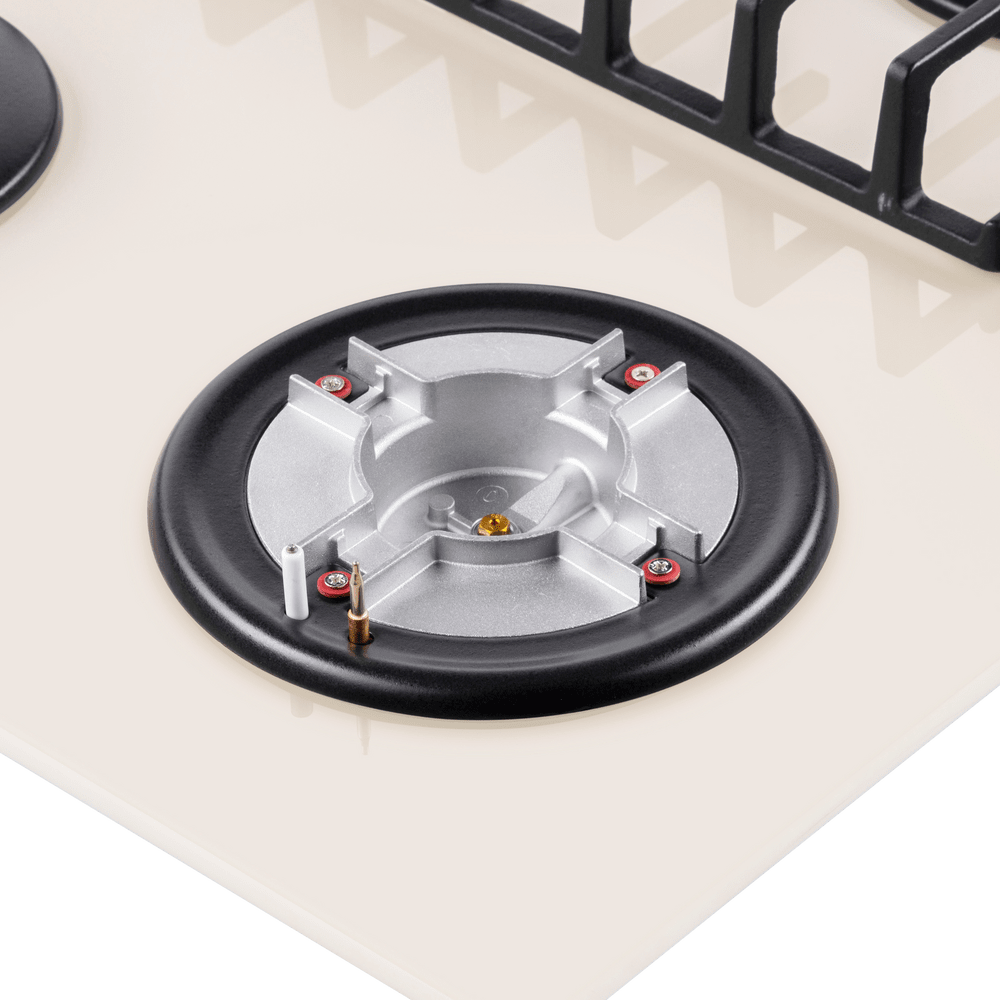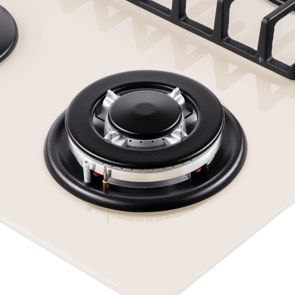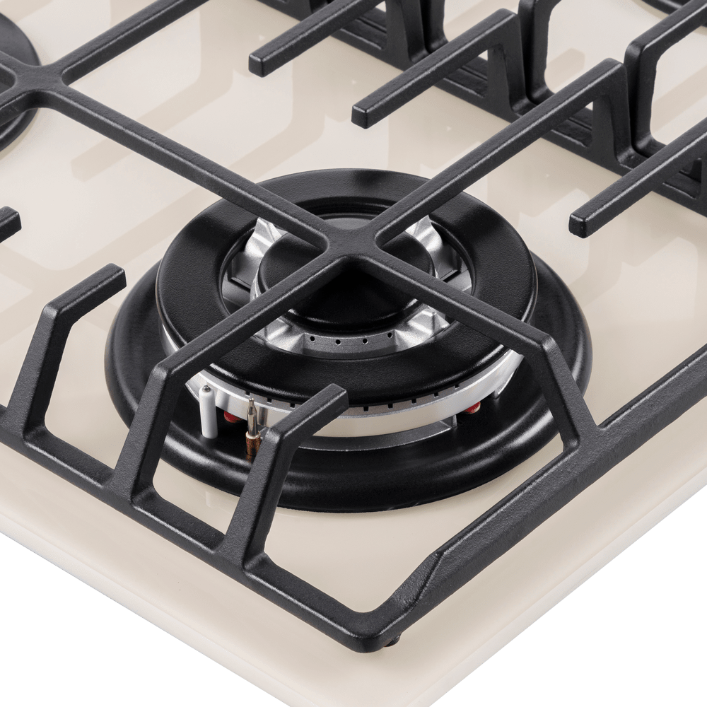 Газовая варочная панель Maunfeld EGHG.64.63CBG/G бежевого цвета. Поверхность из закаленного стекла ударопрочная и легко очищается от загрязнений. Две чугунные решетки с крестообразными соединениями позволяют ставить посуду любого диаметра. WOK конфорка повышенной мощности создает двойное пламя и уменьшает время разогревания или кипячения. Ключевые преимущества: Поверхность из закаленного стекла Чугунные решетки WOK конфорка