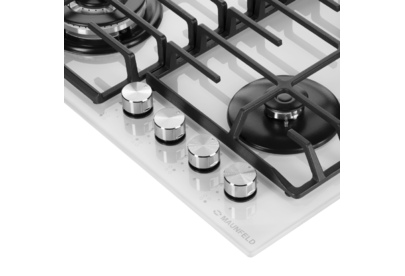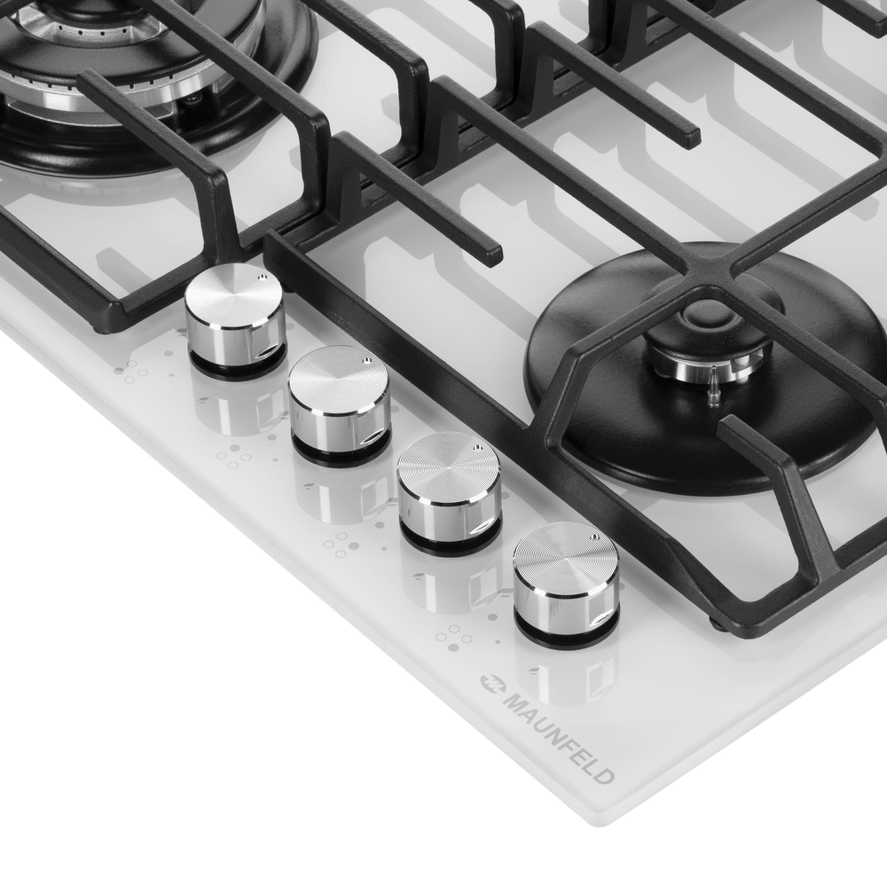 Варочная панель Maunfeld EGHG.64.63CW/G представляет собой современное решение для любителей готовить на газовой поверхности. Произведенная в Турции, эта устройство обладает высоким качеством и надежностью, подтвержденной 36-месячной гарантией от производителя. Поверхность изделия выполнена из закаленного стекла белого цвета, что придает ей изысканный внешний вид и облегчает процесс уборки. Дизайн этой модели из коллекции «Модерн» идеально впишется в любой интерьер, а серебристая фурнитура подчеркнет ее стиль и элегантность. Размеры устройства составляют 59 см в ширину, 51,5 см в глубину и всего 5,1 см в высоту, что позволяет легко встроить его в любую кухонную столешницу. Габариты ниши для встраивания составляют 56×48,5 см. Управление работой прибора осуществляется с помощью поворотных ручек, выполненных из цельного металла. Это обеспечивает надежность и долговечность элементов управления. На поверхности расположены четыре газовые конфорки разной мощности. Передняя лев
