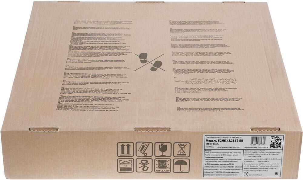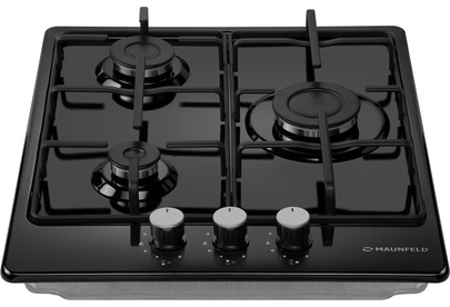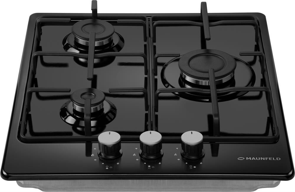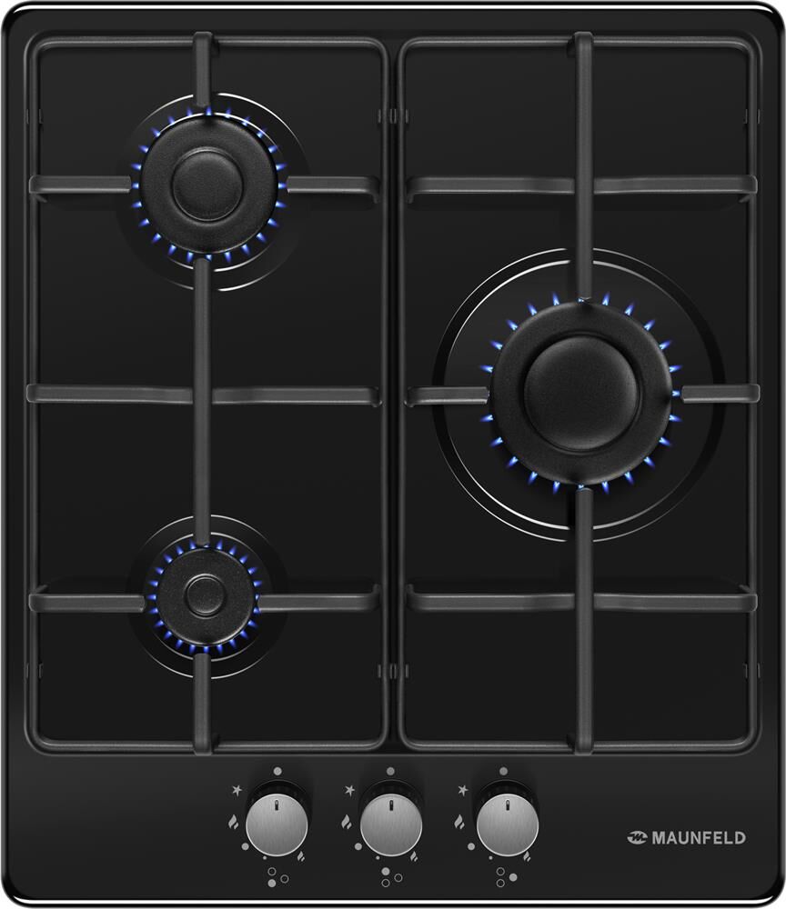 Газовая варочная панель MAUNFELD Комбинированная варочная панель EGHE.43.3STS-EB, 3 конфорки, нержавеющая сталь, черный