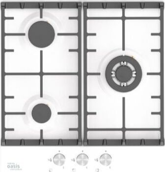 Размеры 46х52х9,7Металл, белый, чугунная решетка, автоматический розжиг, газ-контроль, 3 газовые конфорки, WOK-конфорка, ширина варочной поверхности 45см, Турция